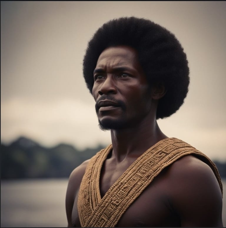 Imagem gerada no app leonardo.ai utilizando o prompt: Crie a imagem de Zumbi dos palmares, rei do quilombo dos Palmares, um lutador, líder de valor, o nosso percursor, na luta pela liberdade do povo negro.